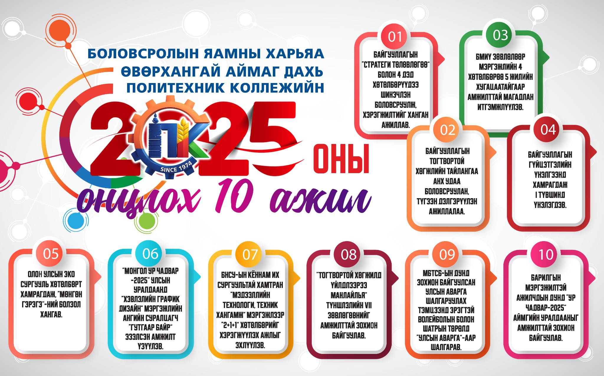 Бид хөдөлмөрийн зах зээлийн эрэлтэд нийцсэн, өрсөлдөх чадвартай, мэргэжлийн өндөр ёс зүй ур чадвар бүхий үндэсний мэргэжилтэй ажилтанг бэлтгэнэ.